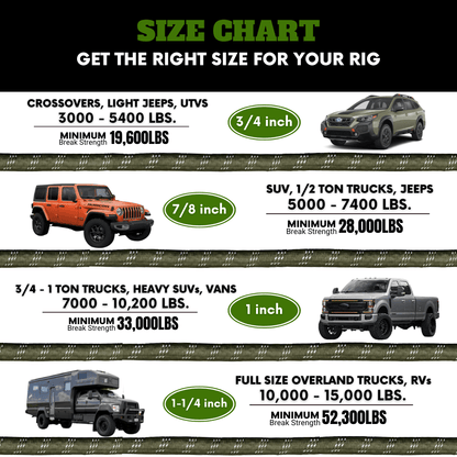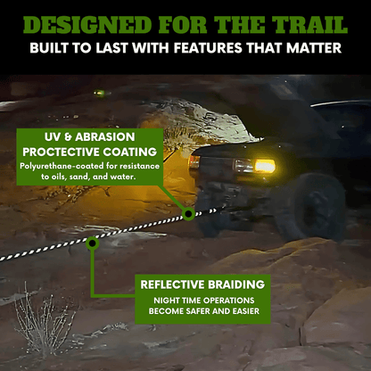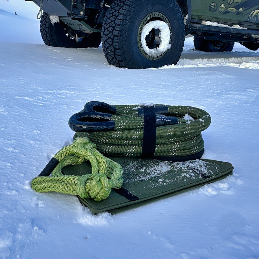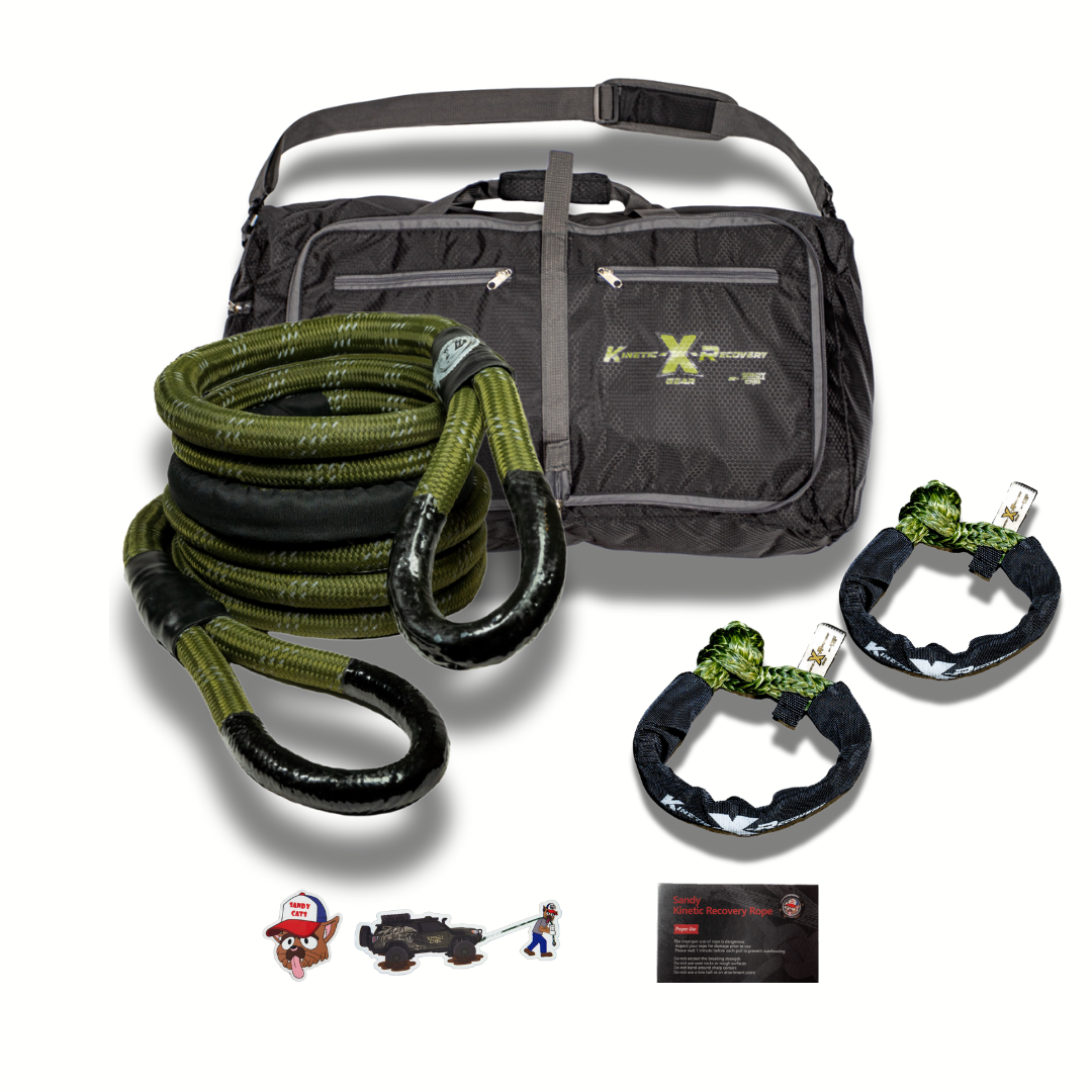 This kit includes our standard soft shackle created to lower overall recovery costs. Many of our loyal customers were purchasing two Hitch Hero soft shackles with their recovery ropes. These shackles are just as strong but do not offer the abrasion protection of our other soft shackle. We often find that protection is not needed on both sides of the kinetic rope in many circumstances. These soft shackles were created to better fit into smaller bumper recover points.