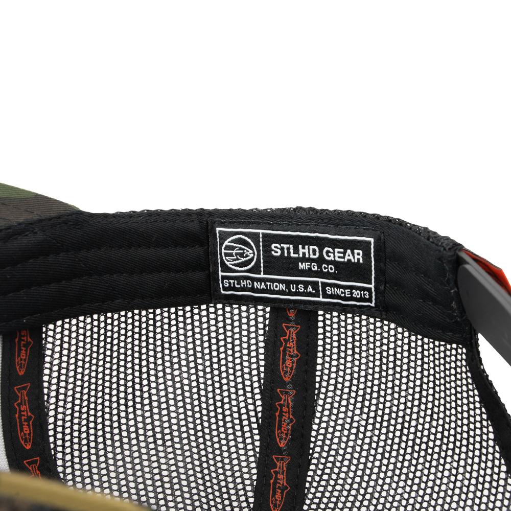 The STLHD Camo trucker is just as tough as the original black and white but tailored for the all-around outdoorsman or woman. A classic camo pattern and snap enclosure make this hat perfect for your fishing hat collection.