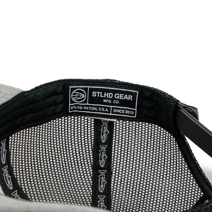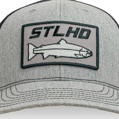 Introducing the redesigned STLHD Chrome Edition Trucker hat, we've taken one of our most popular hats and made it better. Crafted on our exclusive custom hat blank, this head-turning trucker boasts a contemporary heather grey, complemented by black and silver accents. Inspired by the mesmerizing look of Steelhead fresh from the ocean. Embrace the outdoors with this revamped trucker hat.