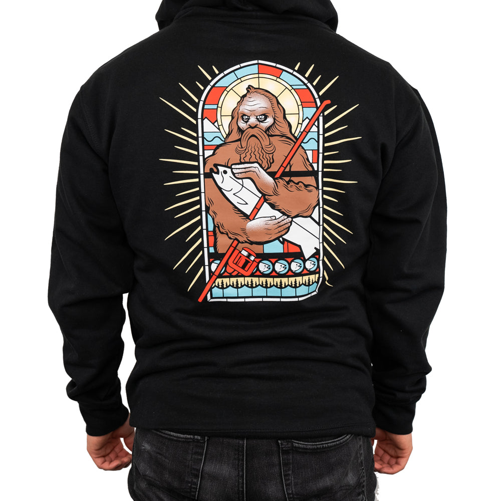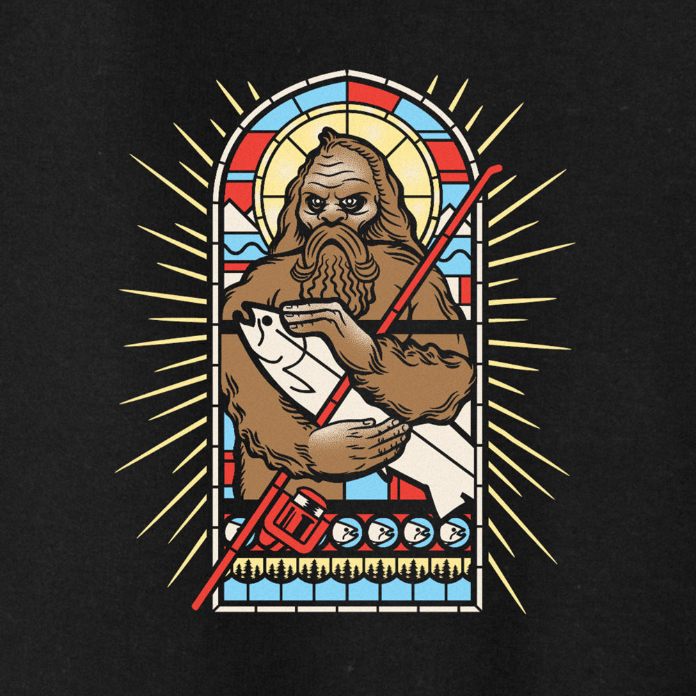 Saint Sasquatch is the patron saint of fishing. Honestly, that's just something we made up but, it sounds good doesn't it? Look at old Sassy just glowing and cradling Steely. Elusive and majestic!