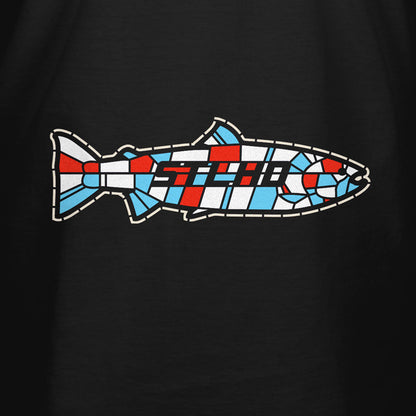 Saint Sasquatch is the patron saint of fishing. Honestly, that's just something we made up but, it sounds good doesn't it? Look at old Sassy just glowing and cradling Steely. Elusive and majestic!