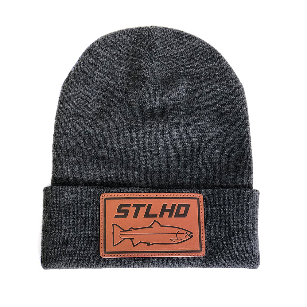 The STLHD Rawhide Grey Beanie Knit Hat is all back for another winter. When winter hits you need to have a good knit hat. Frosty mornings on the river call for superior warmth. We're here to help.