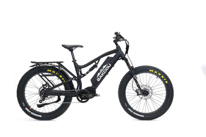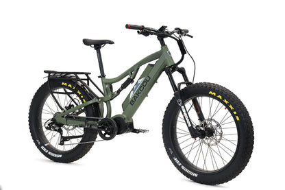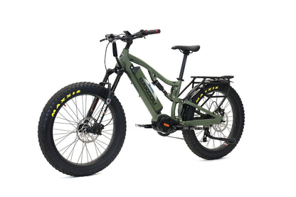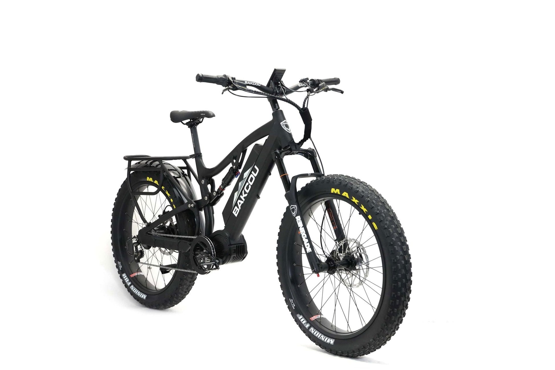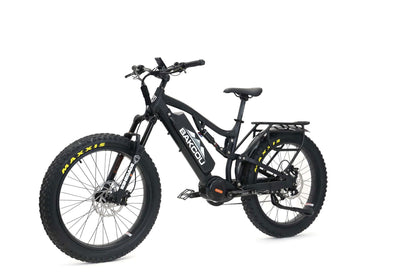 Unleash the full power and performance of Bakcou's ULTRA mid-drive motor with the full suspension Storm G2. Designed and engineered for rugged terrain and technical climbs, this fat tire electric bike can easily handle rocky trails and steep descents, all while allowing you to transport gear and equipment to your hunting spot. The Storm G2's sturdy rear suspension is built to withstand the torque and power of the powerful Ultra motor and its integrated torque sensor, ensuring a smooth and efficient ride. With its advanced sensors and intelligent design, the Ultra motor delivers exactly what you need, creating a natural and powerful riding experience. Discover for yourself why the Bakcou Storm is the top-selling full-suspension fat tire electric bike on the market and sets itself apart from the competition.