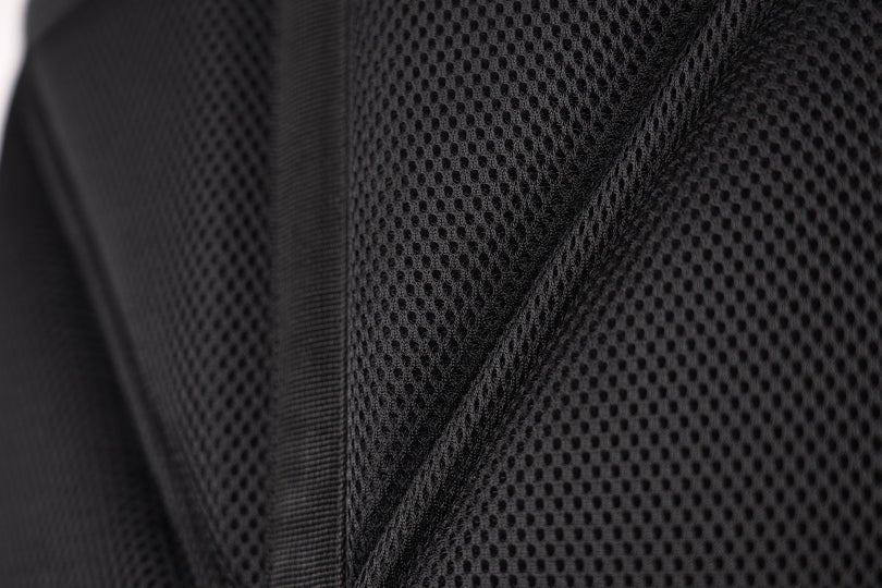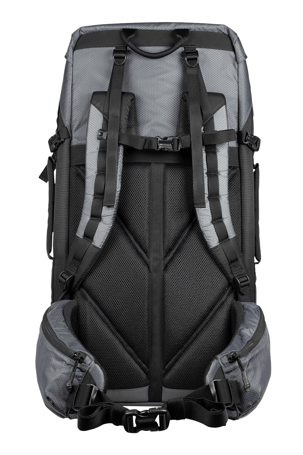 - S-shaped backpack straps, sternum strap, and molded carry handle