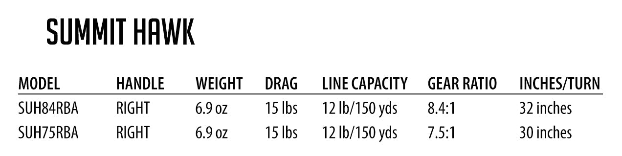 The airy and elegant external components are delightfully contrasted by heavy-hitting internal muscle to give you the advantage over your lake’s biggest bass. Boasting a fish-turning 15 pounds of max drag, there is no beast this reel can’t tangle with and come out victorious. In addition to its dynamic performance, the Summit Hawk Casting Reel also delivers ultra-smooth operation thanks in part to its premium 10+1 bearing system. Delivering monster-taming performance in a sleek package, the Ardent Summit Hawk Casting Reels are the ideal tool to help you secure victory on tournament day.