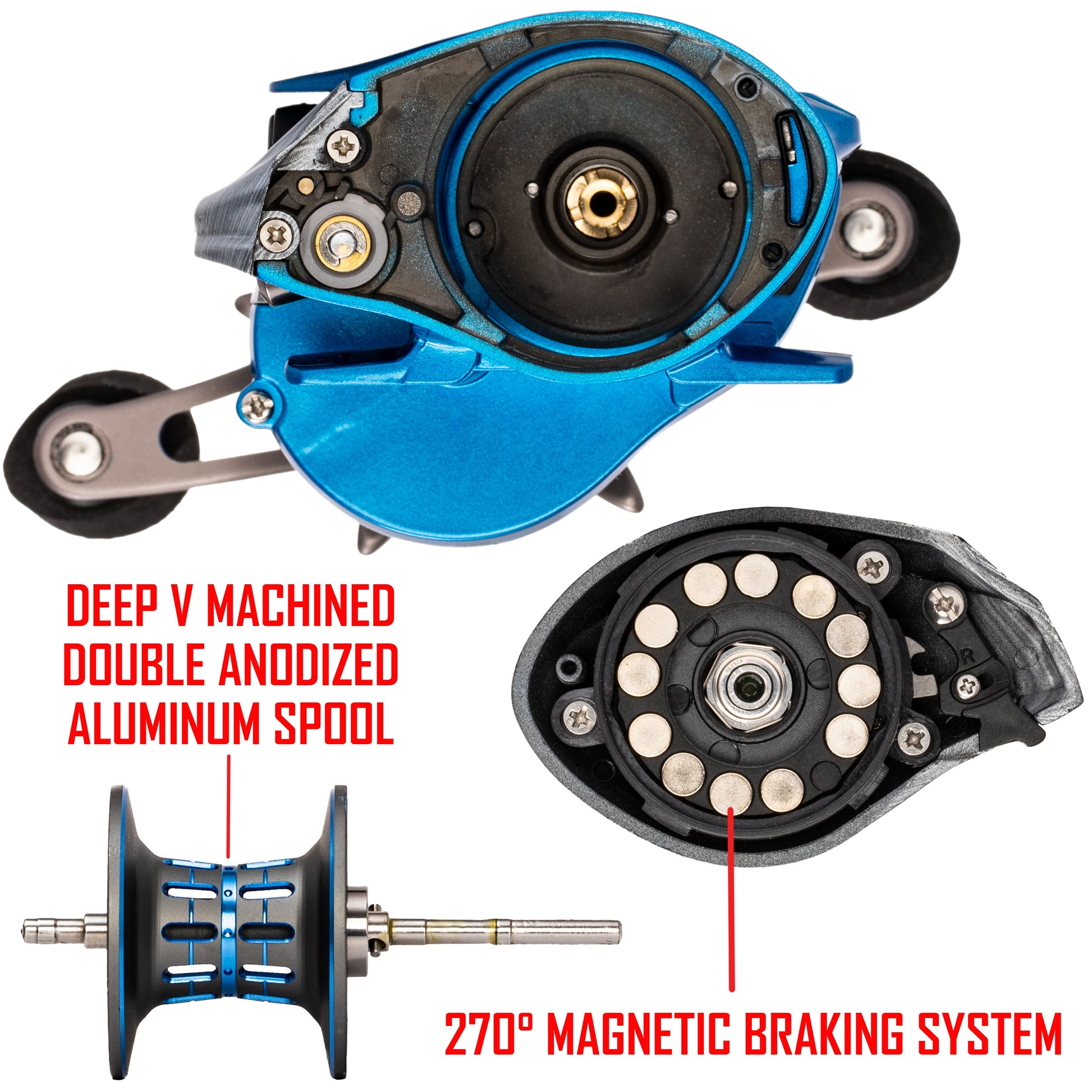 Our new flagship series of reels, the Ardent Summit Hawk Casting Reels, deliver serious hawg-stopping power in a lightweight aluminum package. Featuring an aluminum frame complemented by an eye-catching brushed aluminum look, the reels further reduce unnecessary weight by incorporating a 6061-T6 aluminum spool design and an aluminum swept back handle complete with grip-enhancing EVA knobs.