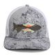 The Sunset Trout Fishing Hat Mesh Back Hat features a trout and mountain silhouette patch on the front. Additionally this Fly Fishing cap features a 6-panel design with a structured front and mesh back. Coupled with our American Fit sizing that fits men's head size MD - 2X hat size. Combine with our ComfortSnap elastic snapback that couples the stretch of elastic with the adjustability of a snapback. If you are looking for the best outdoor, mountain, or fishing hats we have you covered. This fish silhouette baseball cap is available in grey and olive.