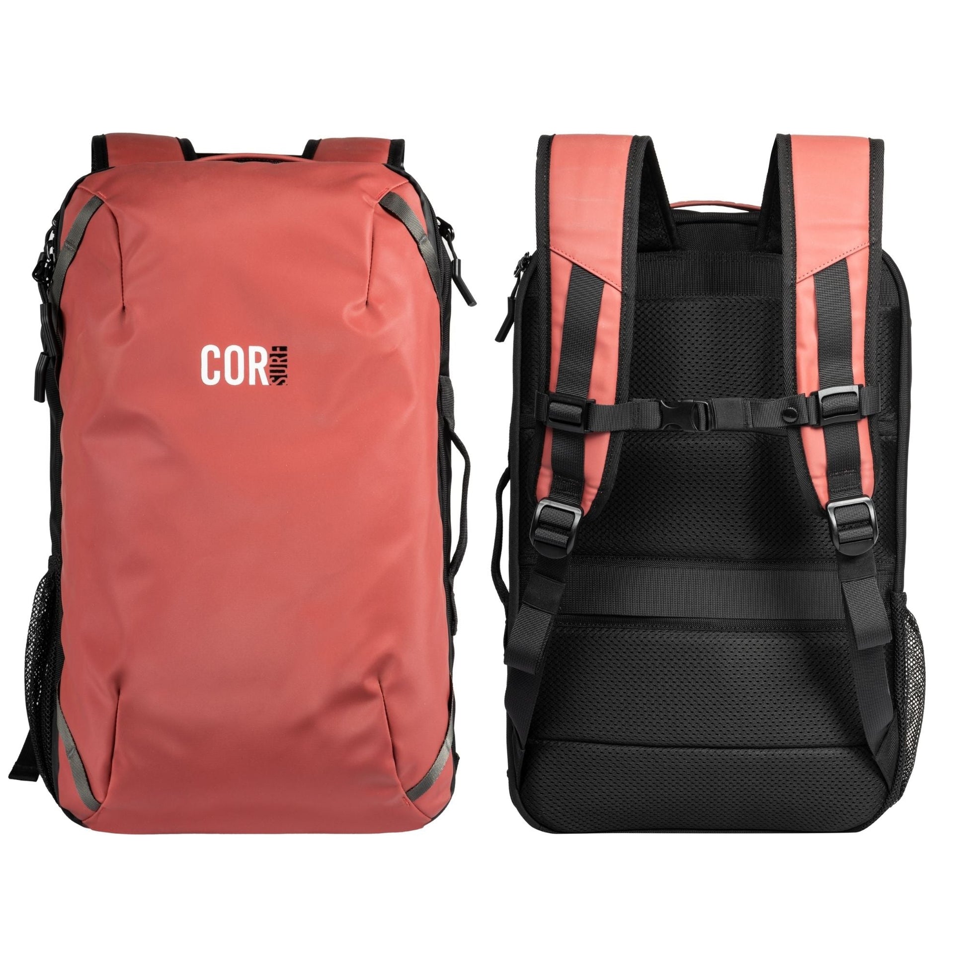 The COR Surf Island Hopper Travel Backpack 28L is the ultimate backpack for your travel needs. Built for maximum comfort, it offers ample space for all your essentials, including clothes, cameras, toiletries, and a laptop up to 16 inches. With its specially designed features, this carry-on luggage is perfect for easy travel through airports and on planes. Its padded laptop side pocket, shock-resistant design, and additional pockets for documents and a Kindle make it the perfect choice for stylish and efficient travel.