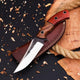 Rosewood and Red Exotic Wood Handle: The handle is a work of art, meticulously crafted from the harmonious combination of Rosewood and Red Exotic Wood. This blend offers not only a comfortable and secure grip but also adds a touch of elegance to your outdoor gear.