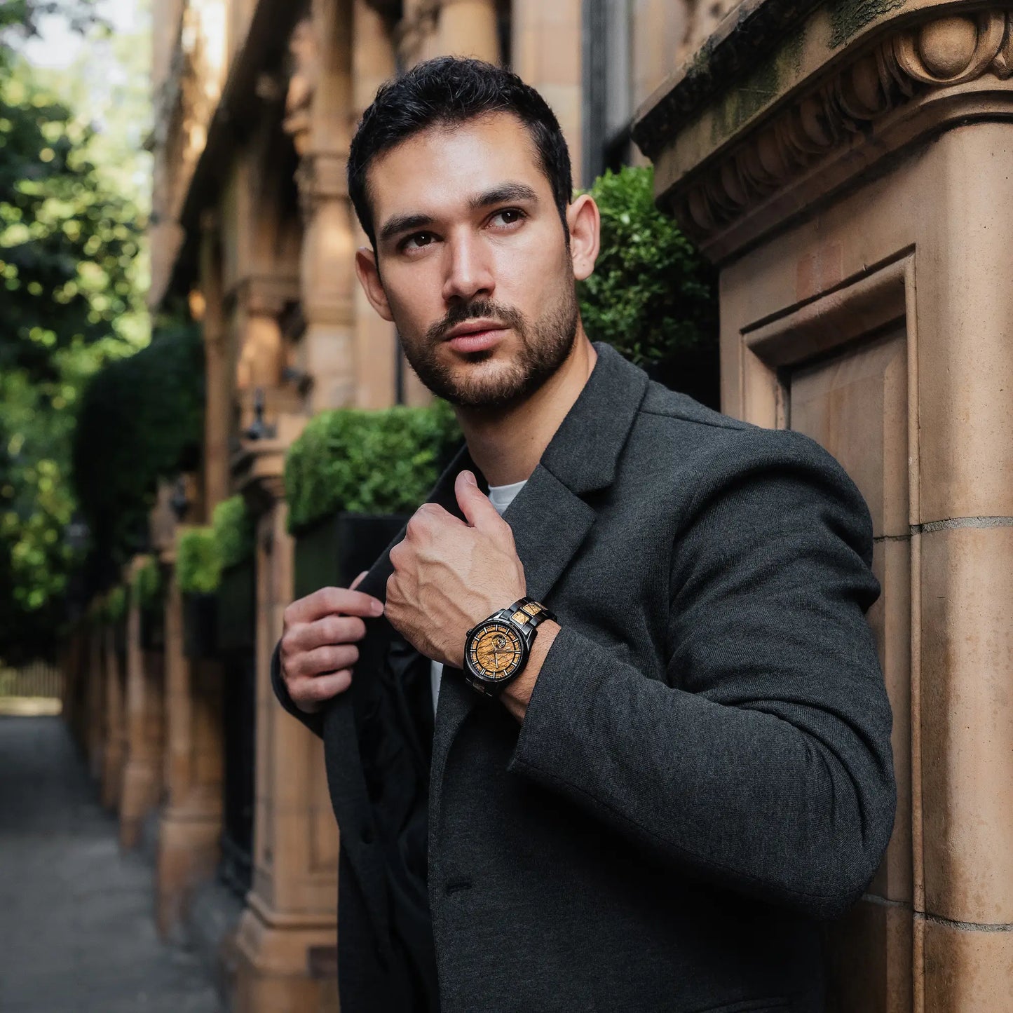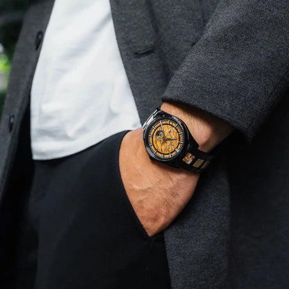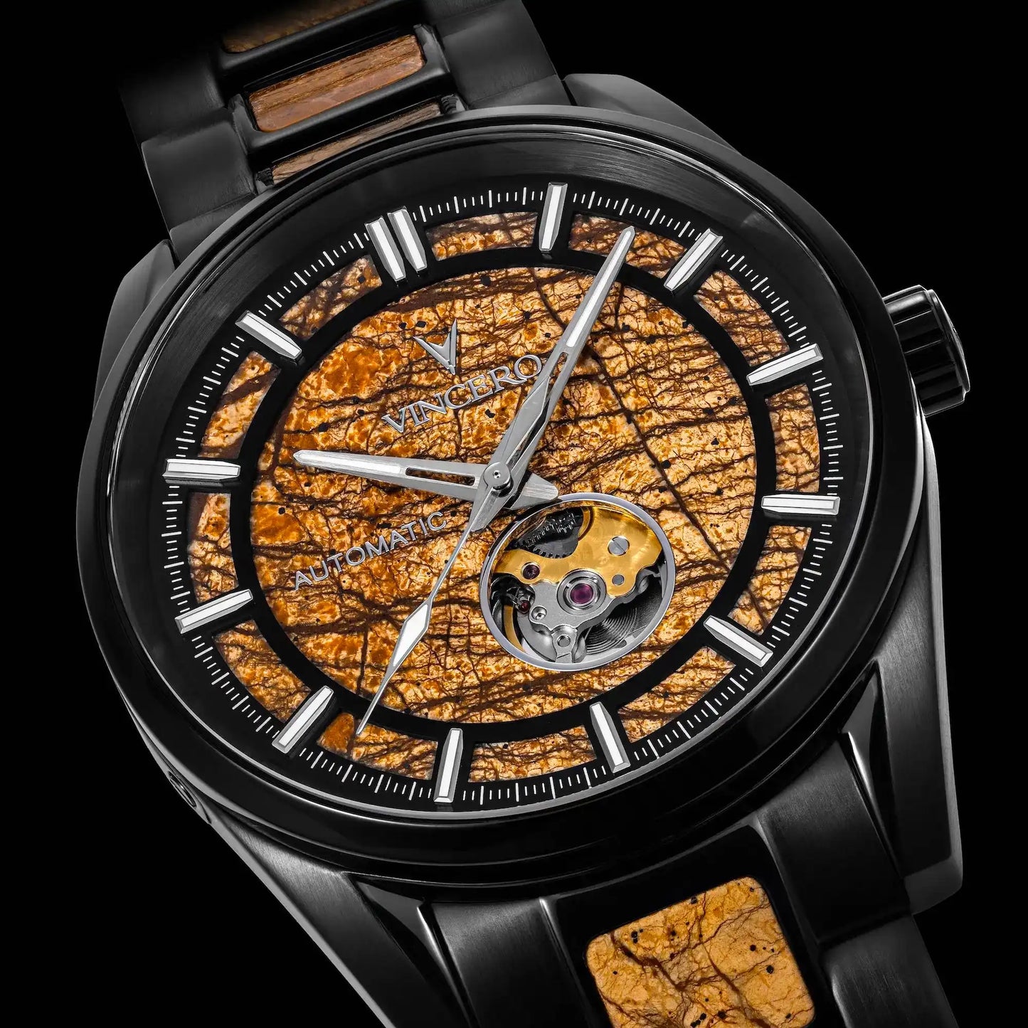 The Vincero The Quantum Auto - Bengal combines precision engineering with sophisticated design, featuring an automatic movement for reliable timekeeping. Its bold Bengal-inspired aesthetic offers a distinctive look, perfect for those who appreciate craftsmanship and style. Durable materials ensure longevity, making it an excellent choice for watch enthusiasts seeking both function and elegance.