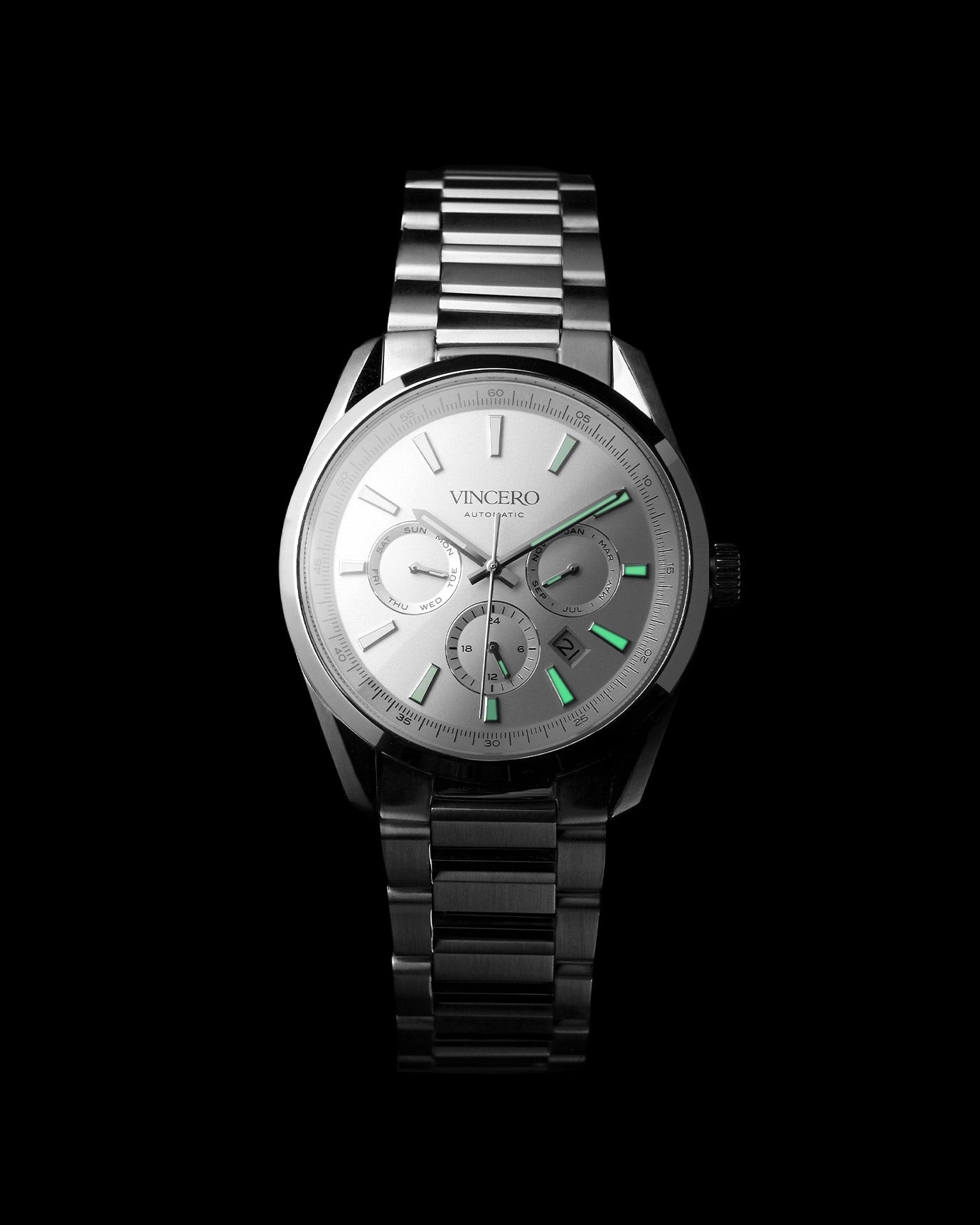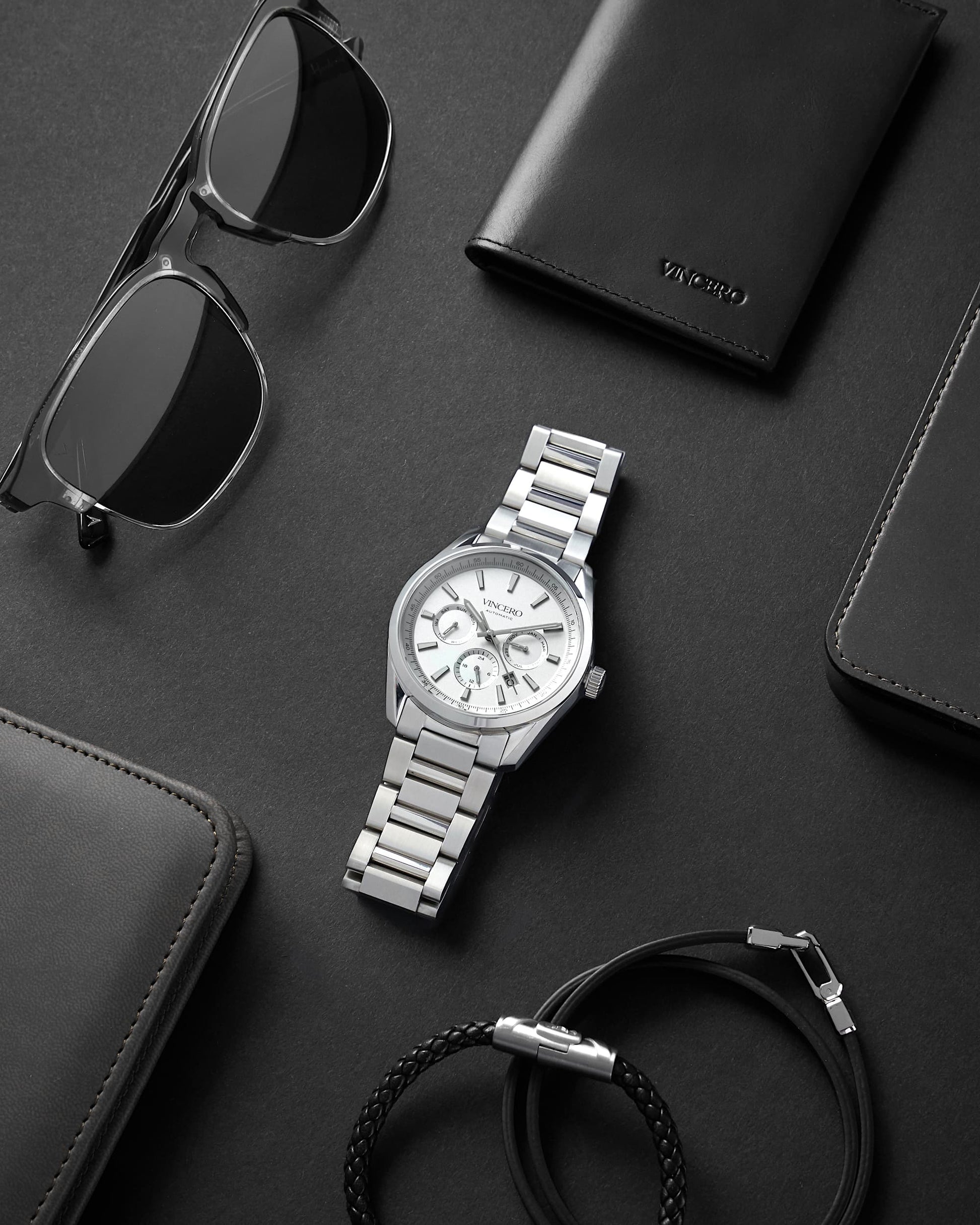 - Strap: Steel H-Shaped Bracelet (Alternating Brushed/Polished)