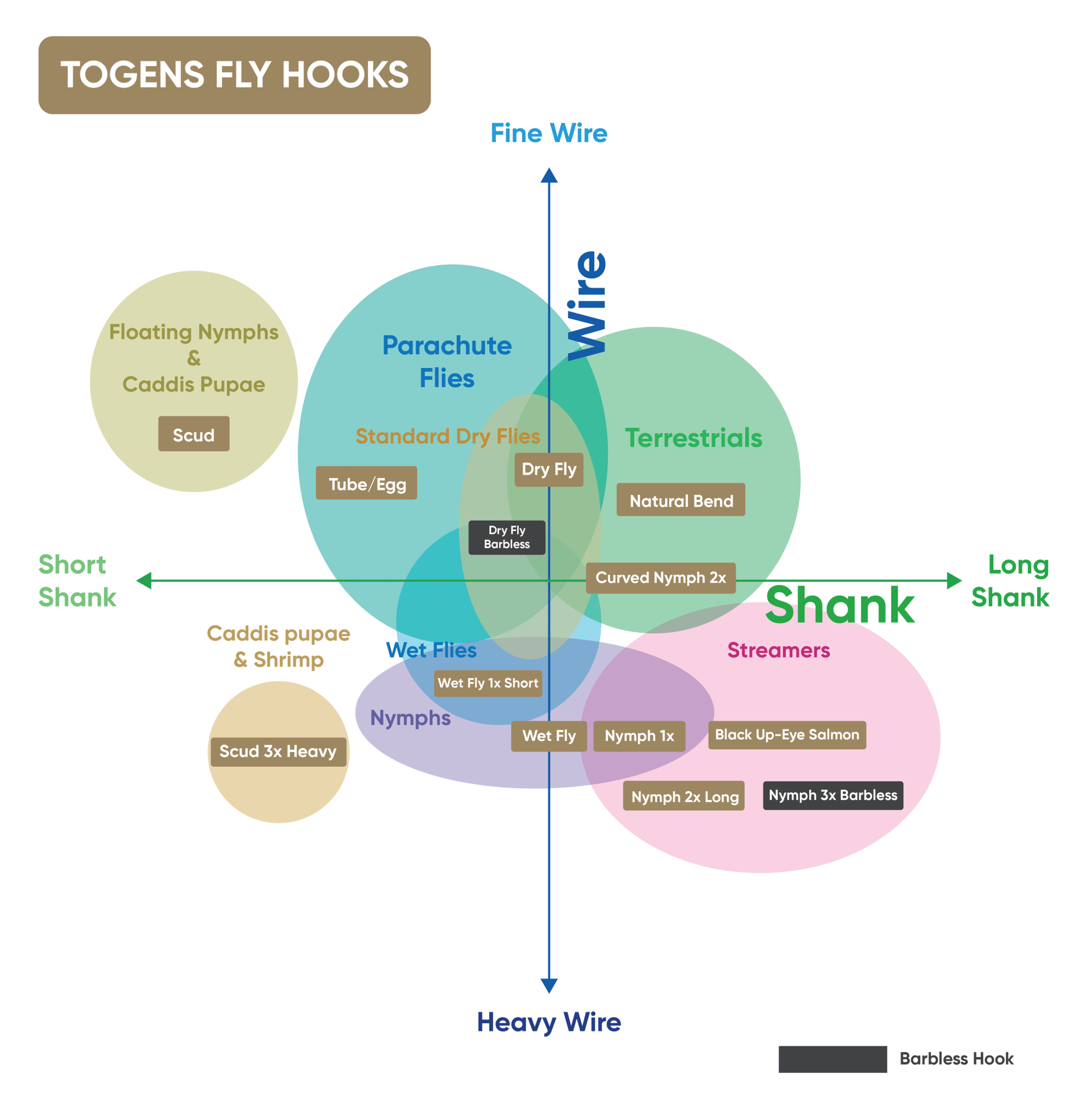 The Togens Scud hook has been known as the traditional chironomid and go to hook when fly fishing. Flies tied on hooks with bent shanks or continuous bends have a more natural shape and look more life-like.
