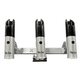 The Triple Deck Rod Holder with Large Plate Mount boasts machined anodized aluminum construction and heavy-duty durability. This rod holder system is great for use with planer boards and can be installed on any flat surface. Included are three True-Set Rod Holders with adjustable two angle settings and rotation positions of 360 degrees. The 5750 True-Set series rod holder is designed for quick rod placement and removal with a choice of 30 or 45 degree angle. This will give you the ability to fine tune the rod placement on your boat. The included Plate Mount allows for the entire setup to be removed when not in use.