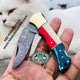 The US Texas Flag Folding Pocket Knife for sale by KBS Knives Store is a beautifully crafted knife featuring a blue and red exotic wood and bone handle with a brass bolster, and a blade length of 3 inches. This knife also comes with a leather case for added protection and style.