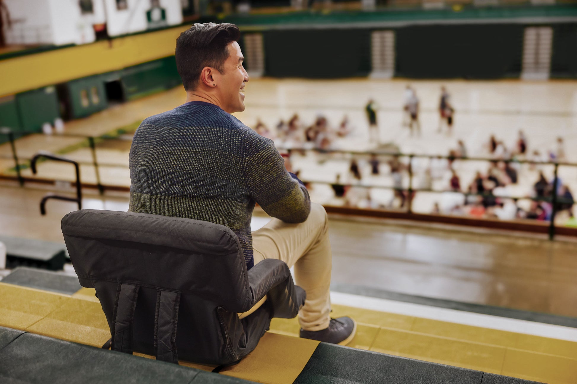 With six backrest positions, padded armrests, and high-density foam padding, the Ventura Reclining Stadium Seat with Back Support is a deluxe yet lightweight and highly-portable folding stadium seat. The lightweight steel frame, sturdy polyester canvas, water-resistant bottom, large exterior zipper pocket, and adjustable shoulder straps make this your go-to travel sports chair! This stadium seat is perfect for spectating in comfort, whether you're watching the pros or your kids (future pros), for lounging on the beach in exquisite comfort, for enjoying the great outdoors on a reclining camp ground chair, and more. This reclining chair with no legs makes the world your cozy seat - your buns and back will thank you every time you ease into the high-density foam comfort of the Ventura. Adjustable backpack straps make this bleacher seat with back totally portable, and you can even invert the armrests to create up to 20" of added width to the seat. Explore flat-folding chair's six backrest positions to find the perfect groove for you. Whether you're watching the game or gaming with your buddies, whenever you need a flexible seat on the go, the Ventura Reclining Stadium Seat elevates kicking back.