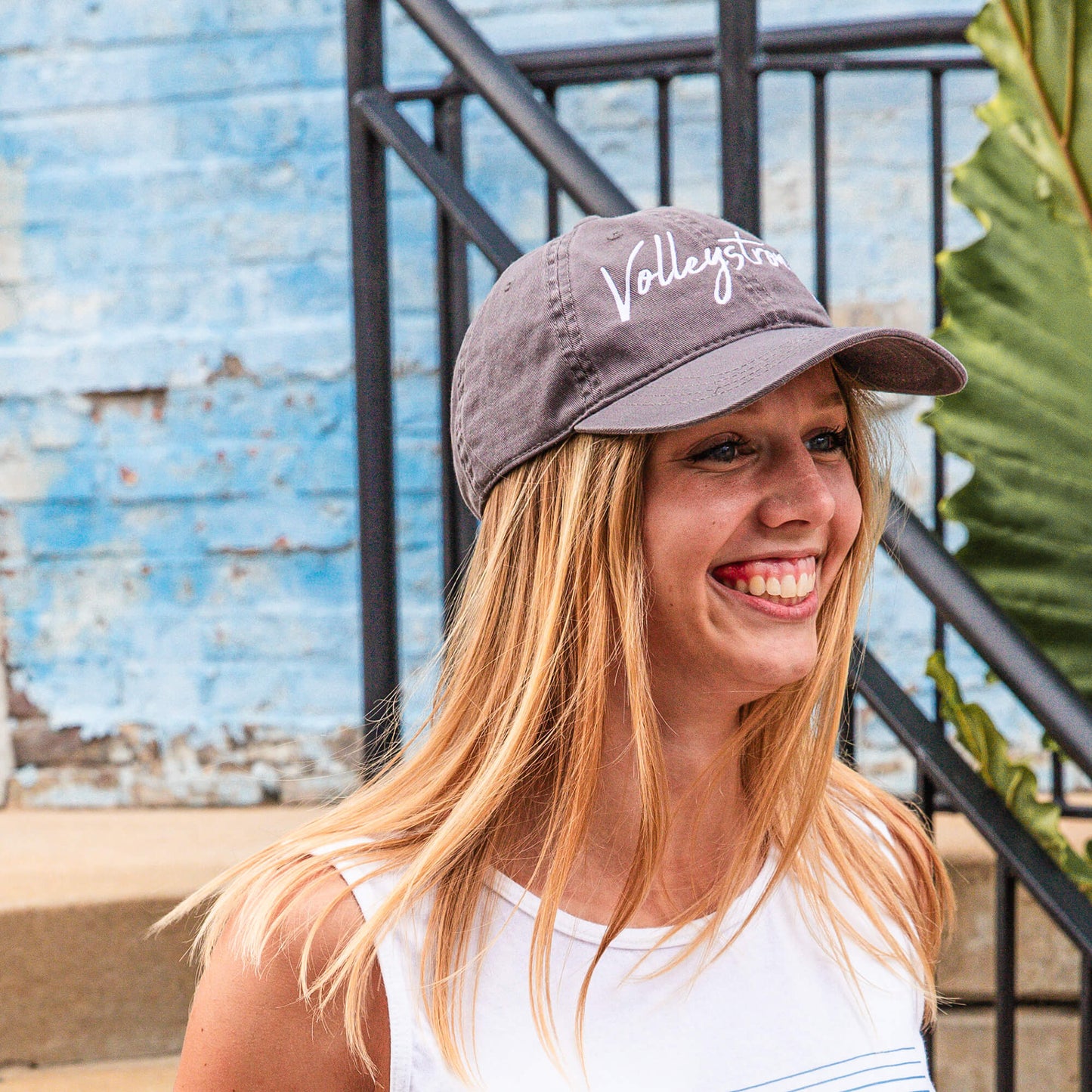 The Volleystrong Signature Dad Hat features an embroidered Signature logo across the front panels. Additional details include an adjustable Tr-Glide buckle closure at the rear and a pre-curved visor.