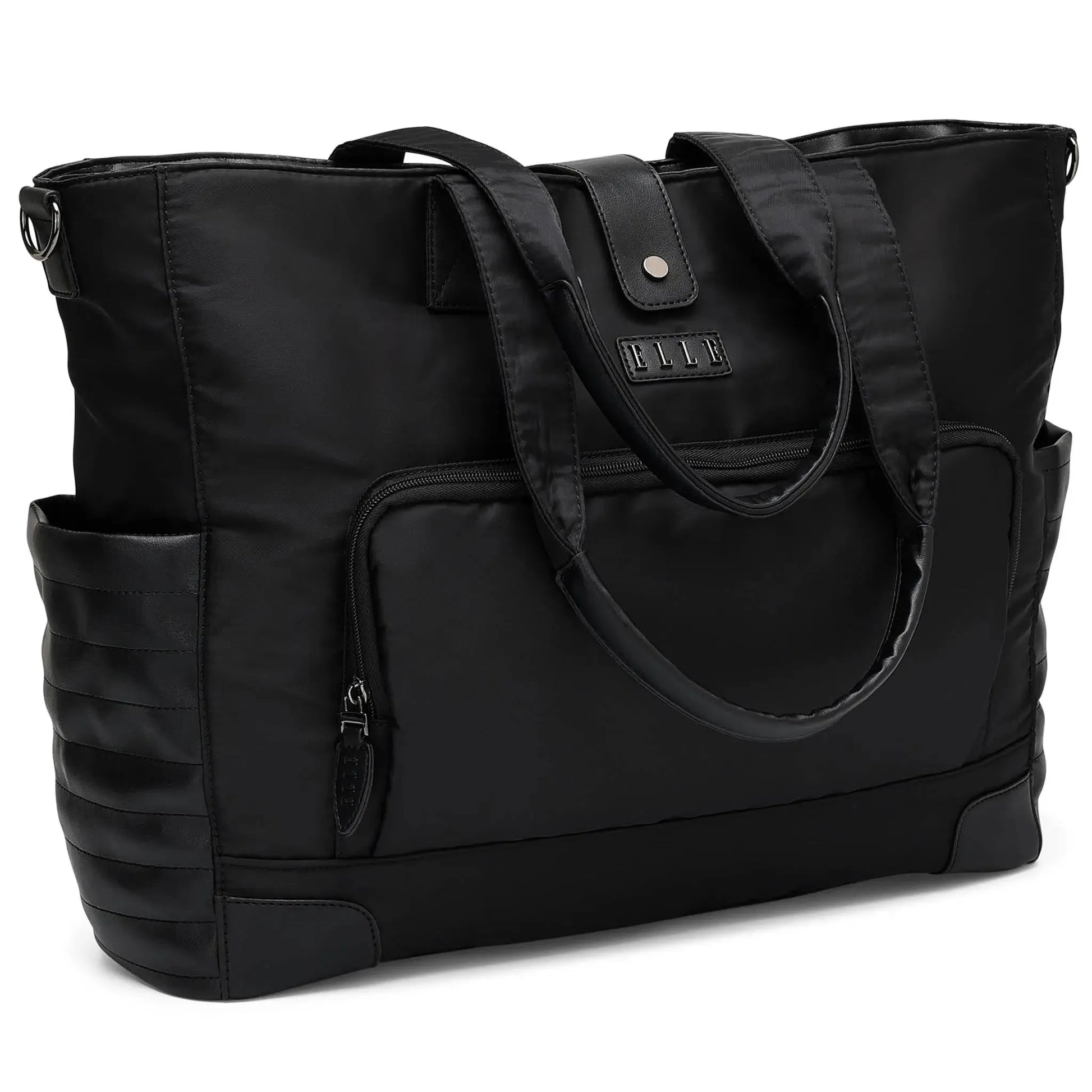 Embark on your next adventure with the ELLE Voyage weekender bag, the perfect blend of style and functionality for the modern traveler. Crafted from high-quality lightweight fabric with thickened vegan leather accents, this bag offers a spacious interior and a sleek design that complements any outfit. Whether you're heading to the gym, yoga class, or a weekend getaway, the Voyage weekender bag ensures you travel in comfort and style.