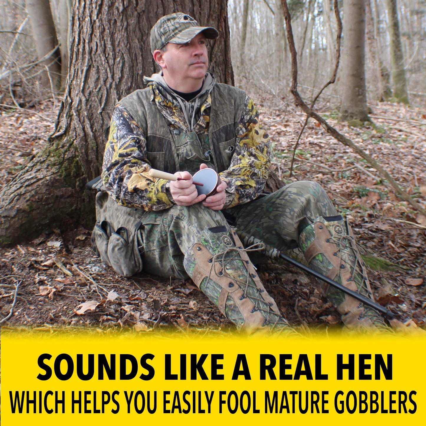 ATTRACT THE LARGEST GOBBLER - Use this slate turkey pot call to imitate real and unique pitches even the wisest old male will be fooled by. Made for beginners and pro hunters alike, this wooden slate friction call makes clucks, purrs, yelps, fly down cackles and excited cutting.