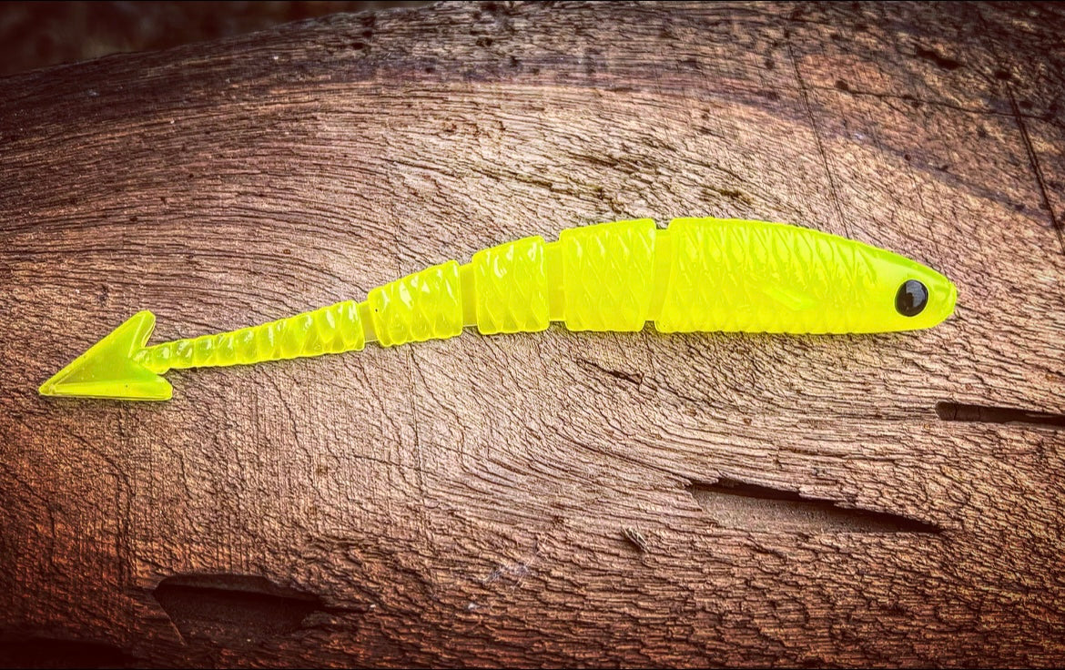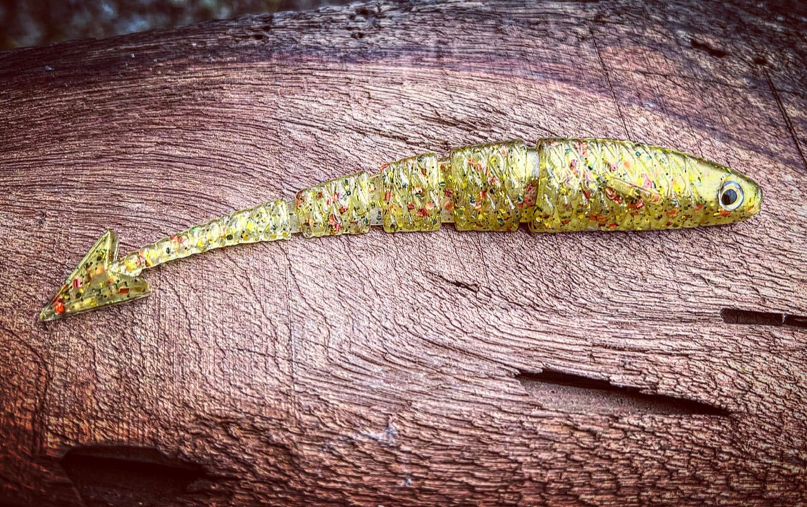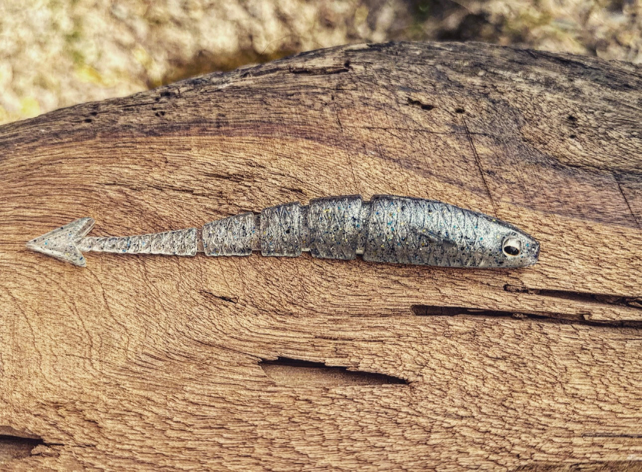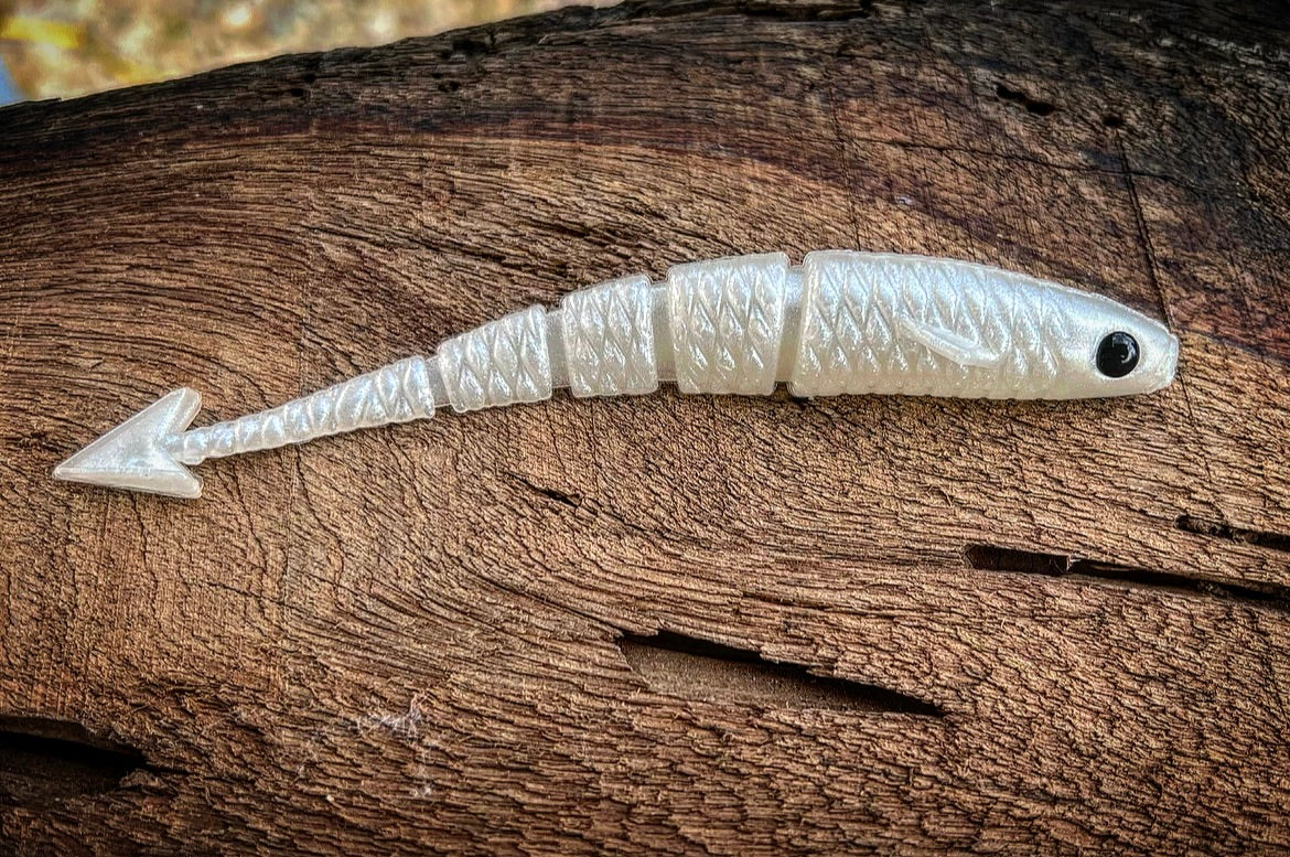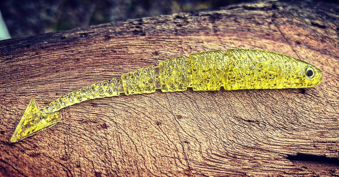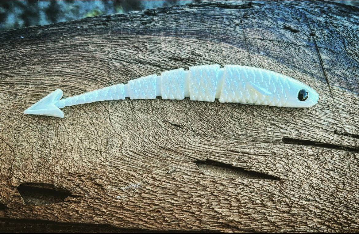 With a ribbed midsection, vertically flanged arrowhead tail, 3D eyes, angled pectoral fin, and the industries FIRST curved soft plastic body, our “Warbird” will soon be known as the preferred “fluke” styled bait on the market. With all of it’s attributes put together, the diving and darting action the Warbird displays will have even the most stubborn Bass swimming in for a taste! Due to it’s vertically aligned tail, the Warbird also outshines other baits while utilized as a chatterbait trailer. When cashing checks is your goal, lean on the bait that has the erraticness of a WW2 Warbird dipping and dodging enemy firepower!