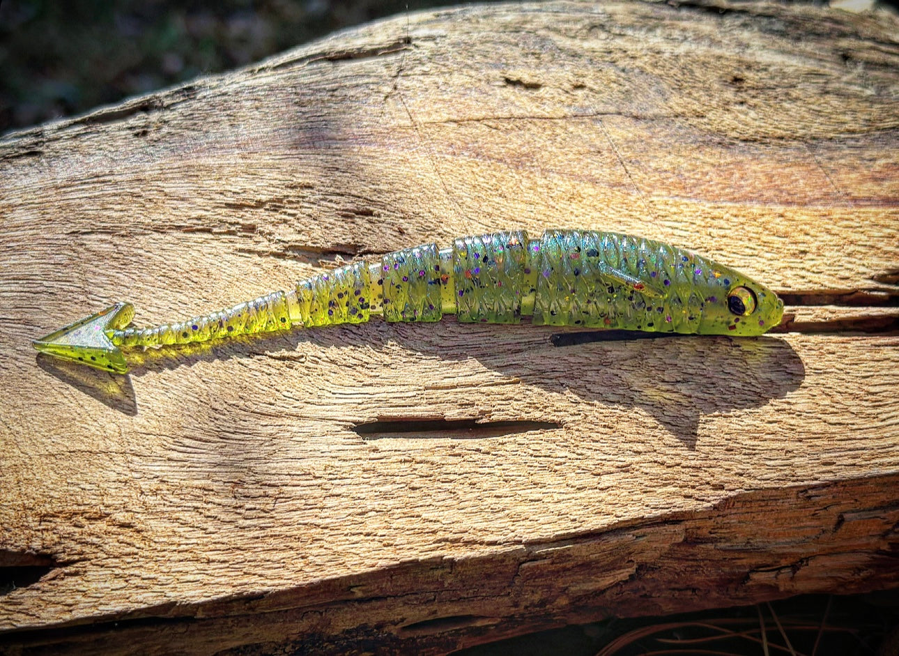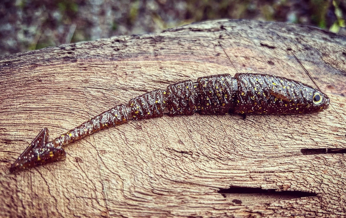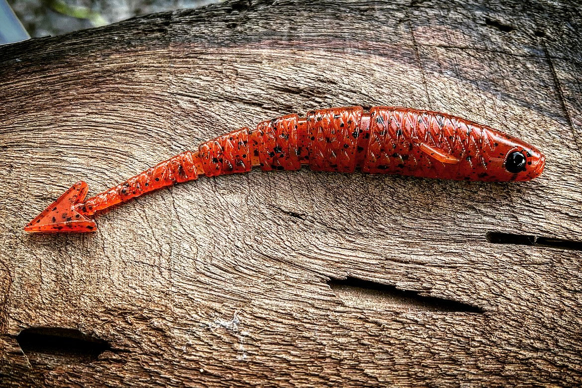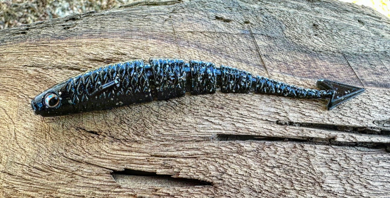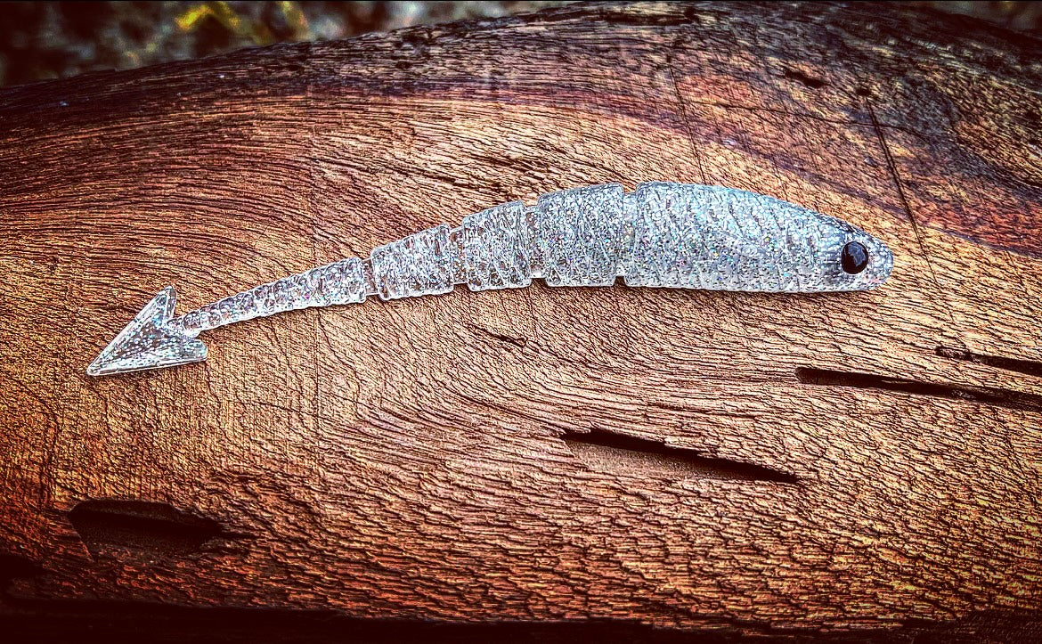 With a ribbed midsection, vertically flanged arrowhead tail, 3D eyes, angled pectoral fin, and the industries FIRST curved soft plastic body, our “Warbird” will soon be known as the preferred “fluke” styled bait on the market. With all of it’s attributes put together, the diving and darting action the Warbird displays will have even the most stubborn Bass swimming in for a taste! Due to it’s vertically aligned tail, the Warbird also outshines other baits while utilized as a chatterbait trailer. When cashing checks is your goal, lean on the bait that has the erraticness of a WW2 Warbird dipping and dodging enemy firepower!