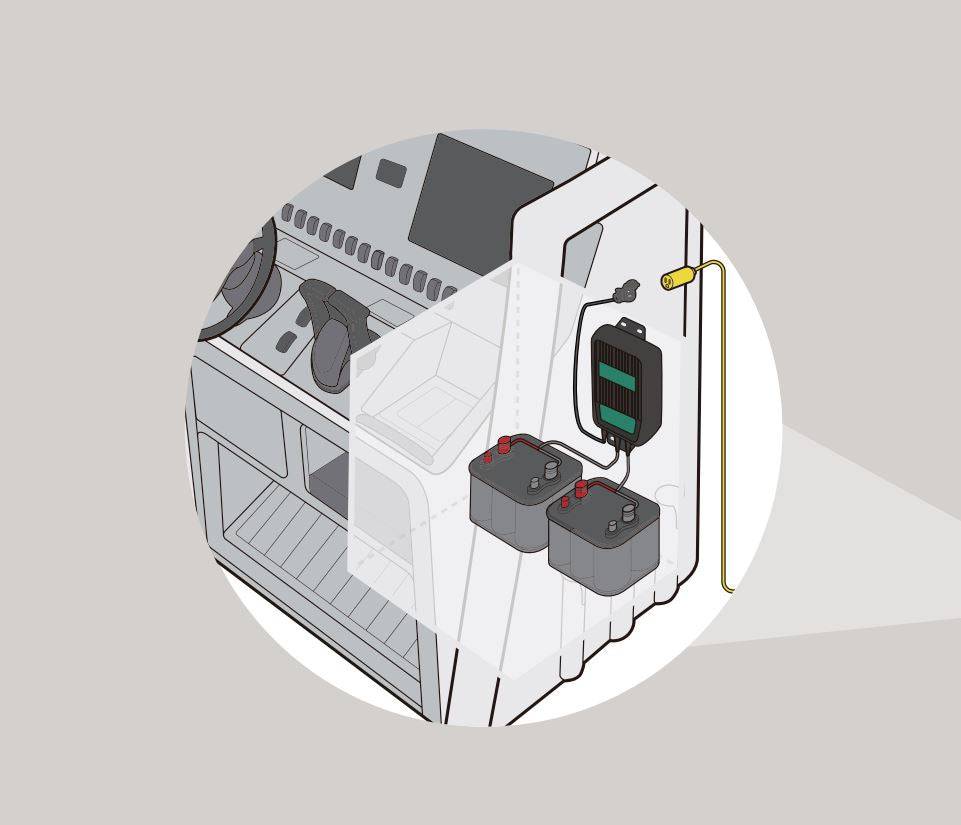 Battery Tender battery chargers are completely automatic and may be left connected to both AC power and to the batteries being charged for long periods of time.