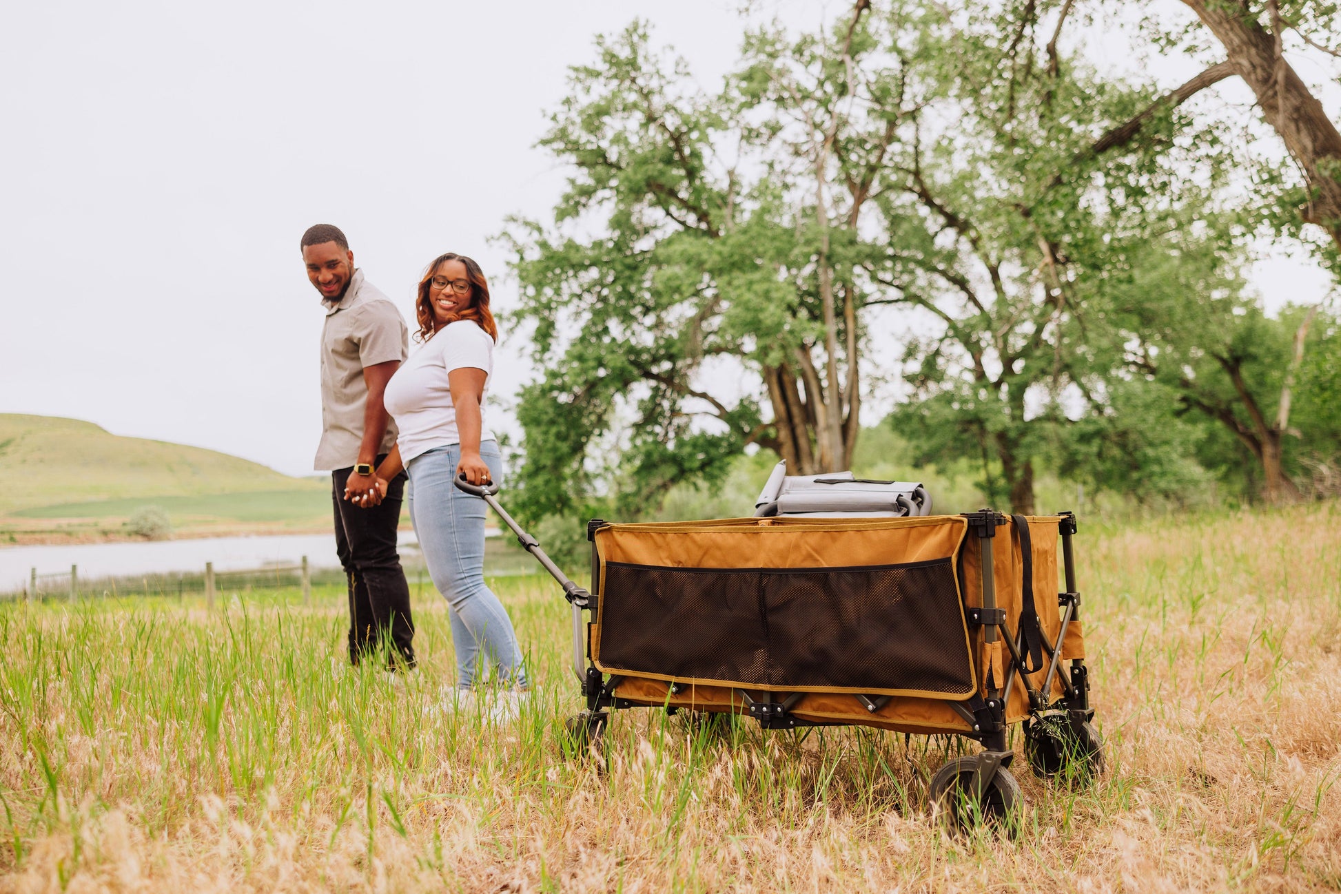 Can you think of anything better than a beach day? We can: a beach day made simpler. Gone are the days of trudging through sand juggling armfuls of beach equipment. Our spacious, collapsible Wilderness Wagon will efficiently transport all your beach and game day essentials, making setting up on the sand as relaxing as lounging in the sun. Load the Wilderness Wagon with towels and sunscreen for a day by the sea, or stock it with bats and balls to bring to the next game. Featuring a telescoping handle, wheels with a locking switch, and a storage cover with a carry handle, the durable and easy-to-use Wilderness Wagon will make your outdoor excursions simple from start to finish.