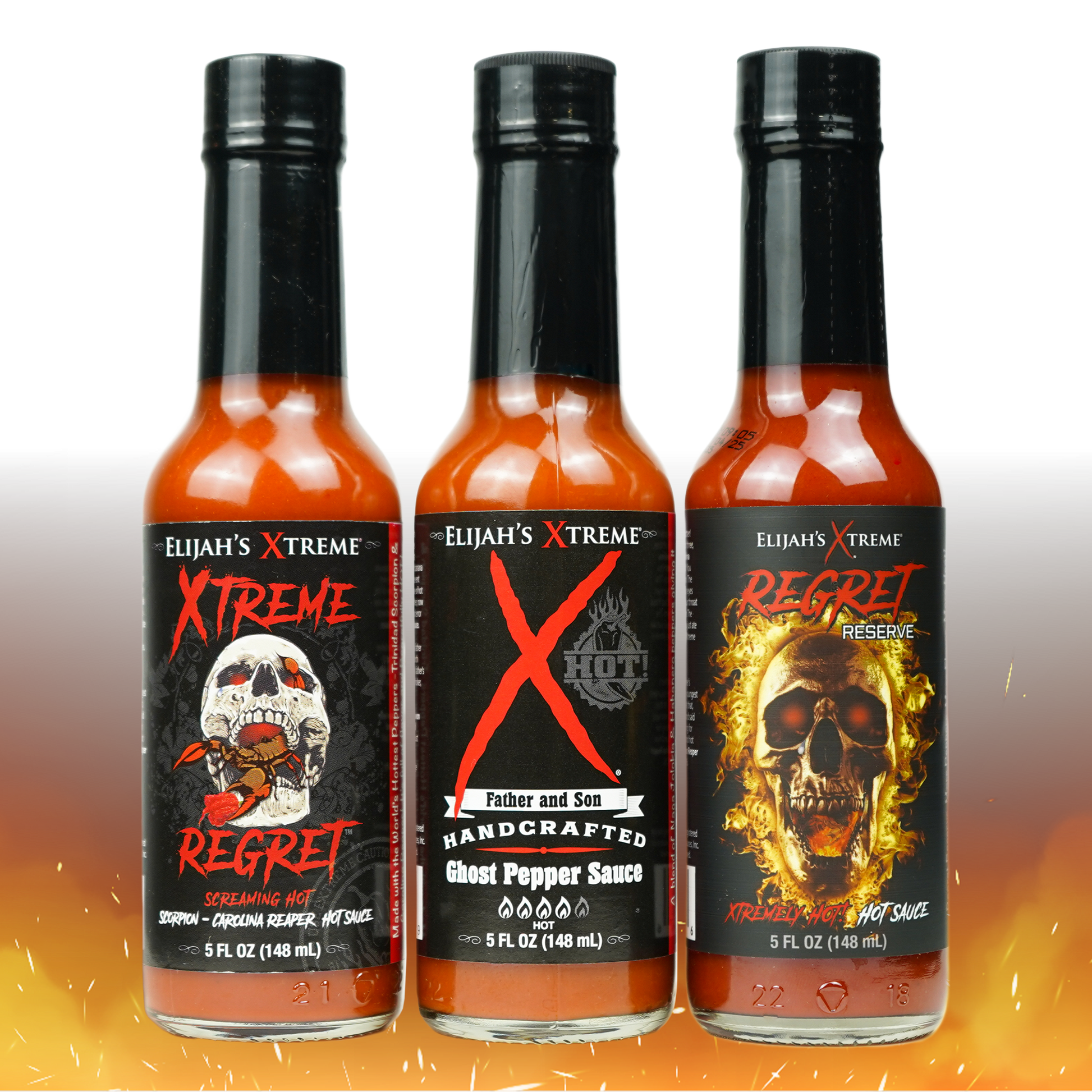 Elijah's Xtreme Trio 2.0 Hottest Hot Sauce Variety Pack, Award Winning Hot Sauce Gift Sets Includes Super Hot Xtreme Regret Carolina Reaper Hot Sauce, Ghost Pepper Infused Habanero Hot Sauce & Regret Reserve Hot Sauce, Gluten Free & Low Carb - 3 Bottles