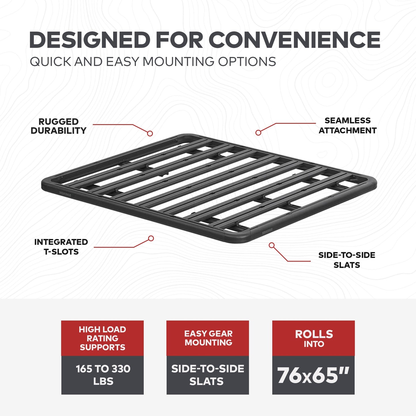 - Side-to-side slats double as crossbars, facilitating easy installation of various accessories like bike racks, kayak mounts, ski carriers, and more; Integrated T-slots in each slat and the outer frame enable secure attachment of T-slot and LockNLoad accessories