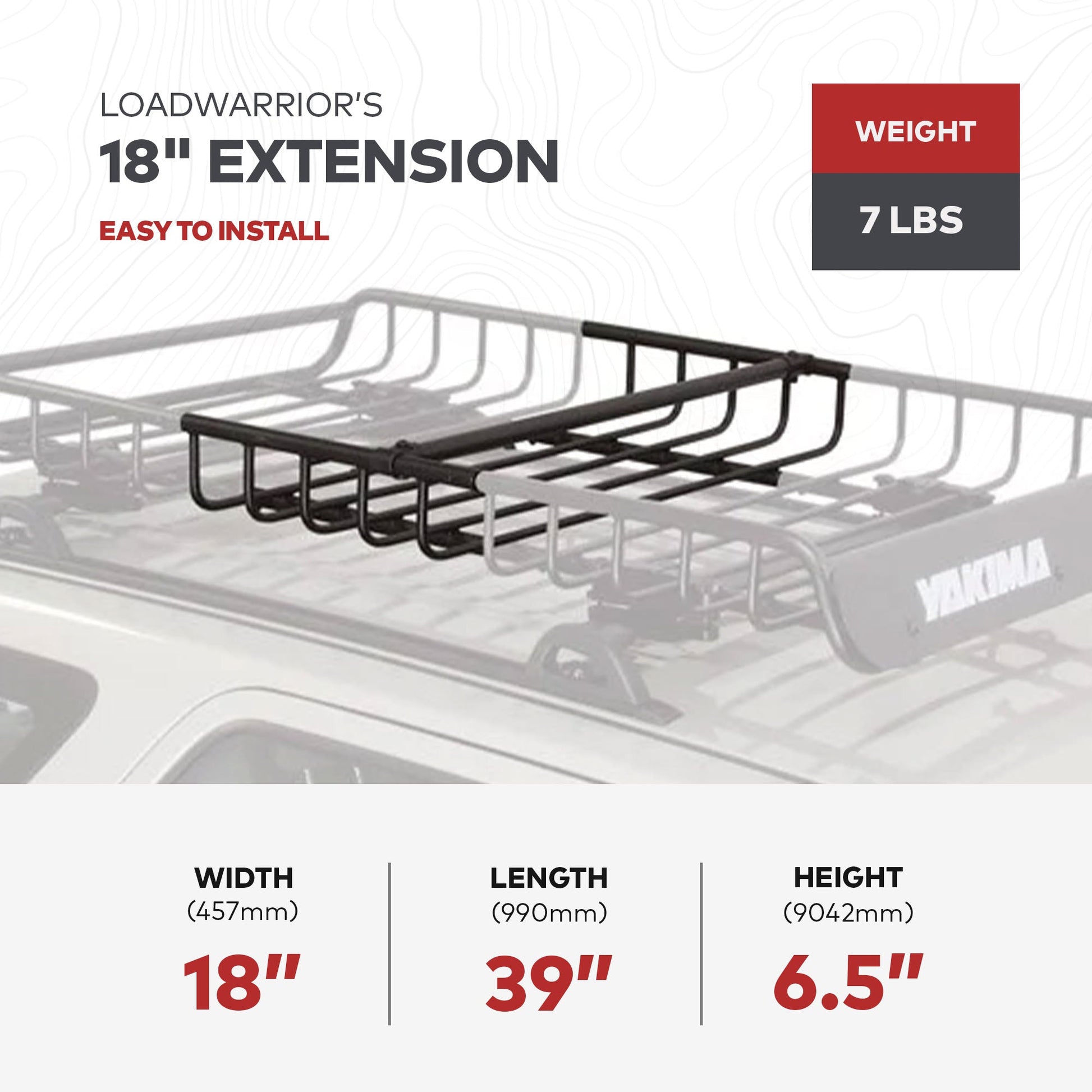- Expand your LoadWarrior's cargo capacity by 40 percent with the YAKIMA LoadWarrior 18-Inch Extension for Medium Sized Cargo Basket